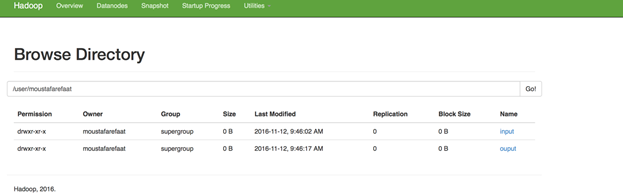 Moustafas-iMac:hadoop moustafarefaat$ $HADOOP_HOME/bin/hadoop fs -mkdir /user/moustafarefaat/input