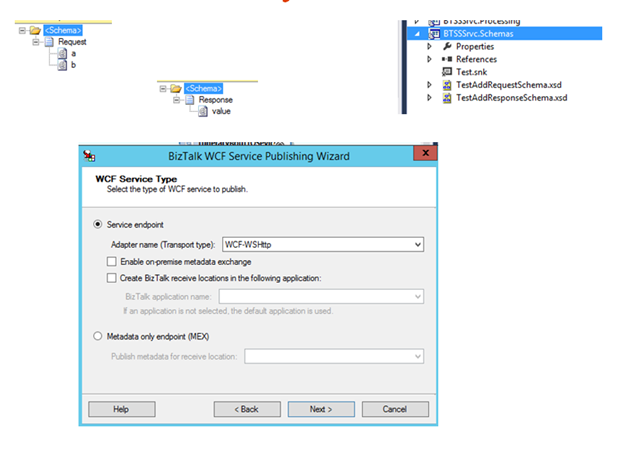 The first step is to define the schemas for the request, response in a BizTalk Project. Use the BizTalk WCF Service Publishing wizard to publish a two way web service with request that takes the request schema and a response with the defined schema.