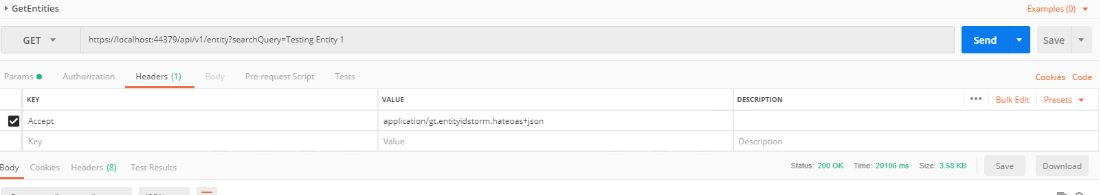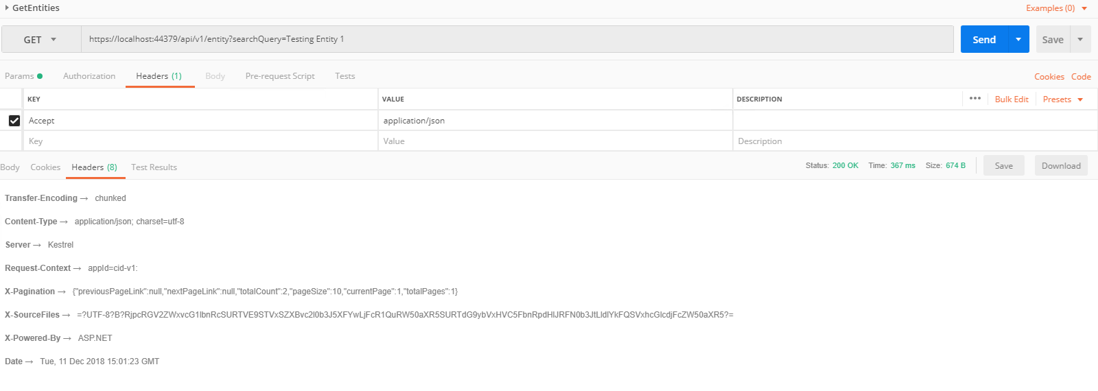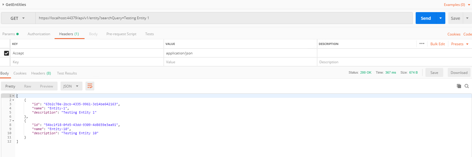 “description”: “Testing Entity 1”